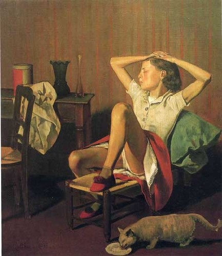 In the previous post, I asked what tricks did Balthus employ to make this work erotic. Just a single (although brilliant) answer from my loveable reader Akmerf makes me doubt anyone else is actually reading this blog (not just watching). Anyway, I’ll cover one of his paintings now.