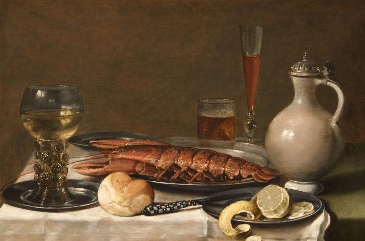 The primary law of a classic Dutch still life (17th c) says the viewer must feel the presence of people who are not to be shown. Like, the person in the painting was there a minute ago and is coming back any moment. Do you know why? Because they painted food and the viewer had to be sure the food is fresh even if the painting had been hanging on the wall for ten years. Look at this pile of food: