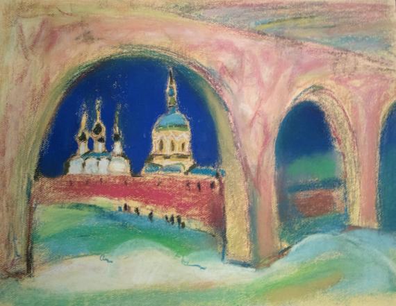 1. There’s a lot of art I don’t get fully at first glance as well, but good art always has some intrigue or conflict that make me want to go further. In this piece it is the use of colors, that, while “unnatural”, create a certain harmony, linked to expectation of something that exists beyond the picture plane. The deep blue plus the clash of red and green are known to have this effect on the human brain, but that, of course, strongly depends on the initial emotional state of the viewer. The areas given to warm and cold colours are extremely well caluclated to create a balance (this is a bit surprising for a sketch like this, actually). The sketch makes me think of the portrait town as something very provincial, very old, very twisted in terms of history, but still alive and kicking. A single sketch created this impression. And all this raises my interest and makes me study the history of Zaraisk (a town I’ve never been to). But if I don’t go and look into the town’s history, the sketch is very likely to geet wiped away from memory. So, it is not about knowing the Story in advance that helps to appreciate art, but it is about learning the Story to understand it to its full capacity )