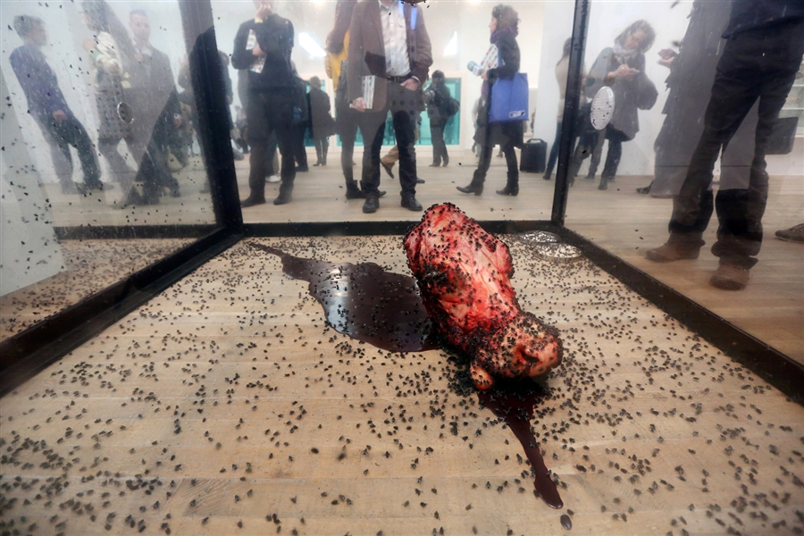 Damien Hirst installation celebrates the simple truth that viewers, just like flies, are attracted to death in all its ugliness. It is not great art, because it cheers up the evil side of life only.