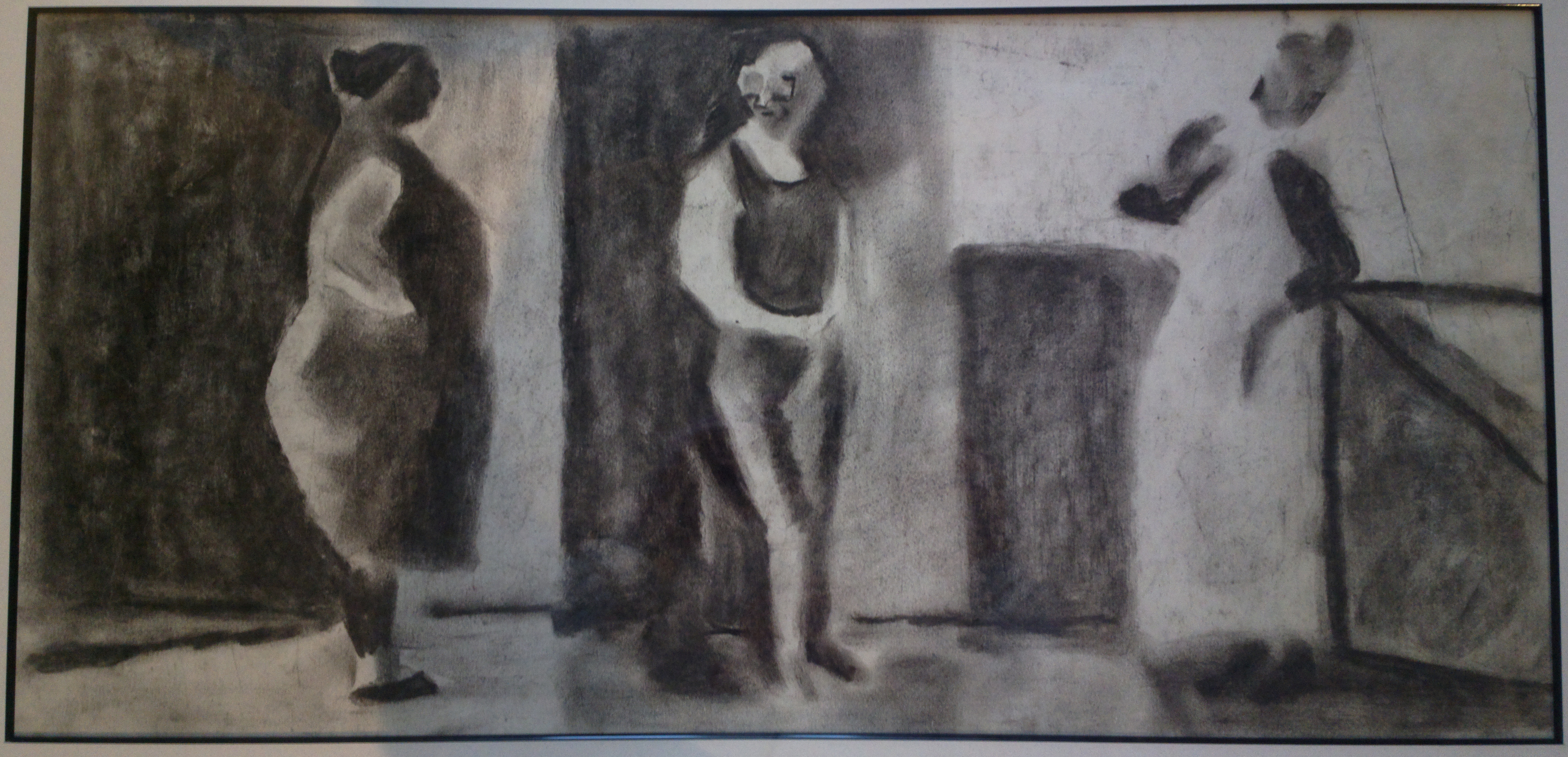 Two women and a man. This drawing is composed simply, but offers a lot of storytelling, with only a few shapes and very limited detail.