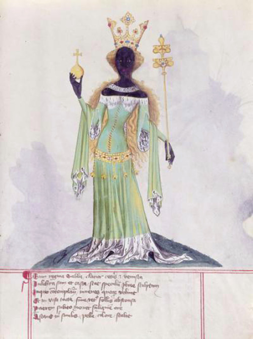Otherwise, the Medieval European art scene was as white as your typical refrigerator; with people of colour assigned the rare roles of pageboys and the Queen of Sheba (confined mostly to book illustration, and racially vague, for sometimes her skin was painted blue or purple). Albertus Magnus, a saint and scholar of the 12th c., was certain that perfect reason could dwell in the “normal body” only. His ideas had paved the way for black people to be seen as sub-human for the next three hundred years.
