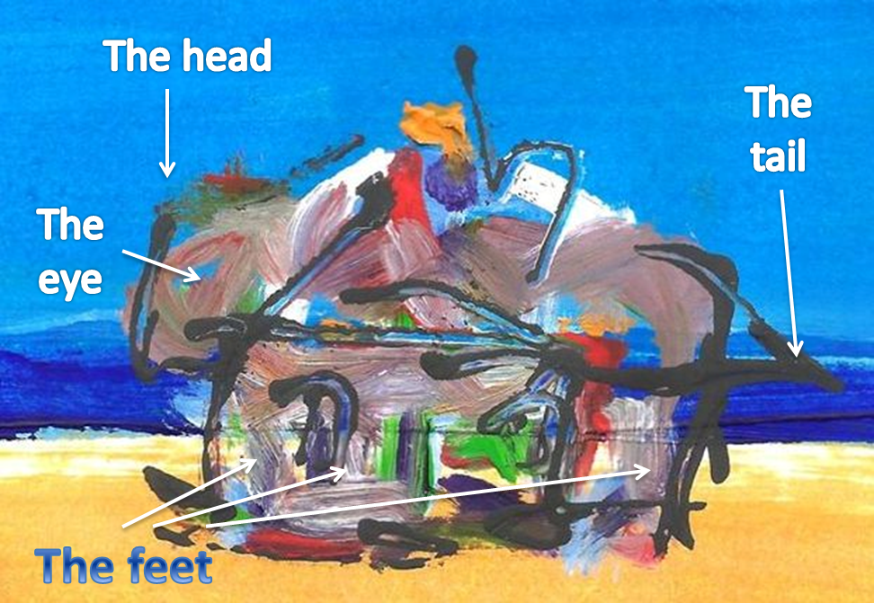 When I applied the “golden ratio snail” to the painting, the hut fit perfectly inside it: it’s seemingly chaotic lines rhyme with the shape of the snail, its chaotic details turn out to be proportioned accordingly. Moreover, the snail of the hut fits into a bigger snail that seems to bring together the skies, the ocean, the sand, and the house into some single entity, creating a union of the elements: air, water, and sand.