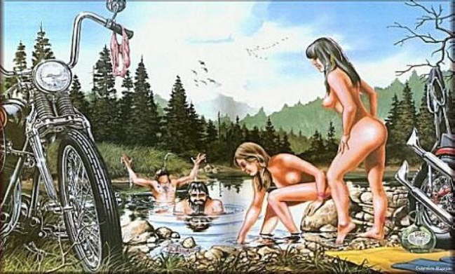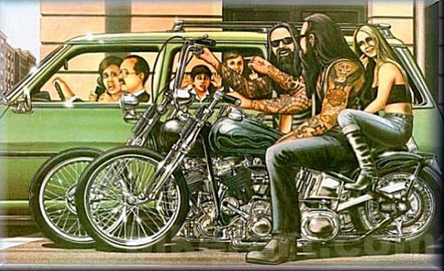 I’ve googled “biker art”, of course, hoping to see the creative fruits of collective freedom allegedly dispensed in limitless quantities to proud members of biker gangs.