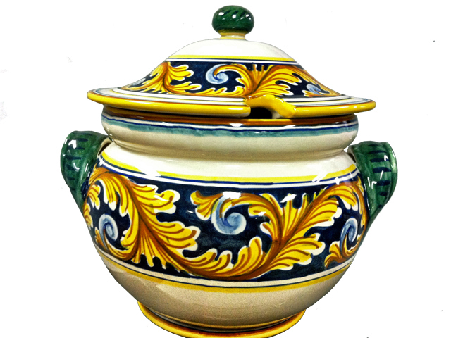 Today, souvenir shops in Italy are stacked floor to ceiling with clay pots and plates painted in two or three “typical” designs that anyone who has spent a week there becomes allergic to. I suspect the painting is done by machines, or rather printed to look painted.