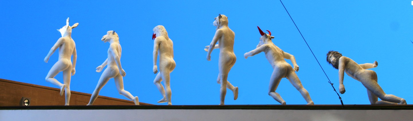 What you see above is a multi-figure installation in Florence. I flipped it over. The figures are not walking along the ridge, they are crawling up the side of a house. This installation is going to be the hit of the year, especially on Facebook or Instagram.