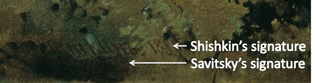 For 25% of the sale price, Savitsky ceded his copyright claims, and Shishkin removed Savitsky’s signature from the canvas. It is still possible to see traces of it: