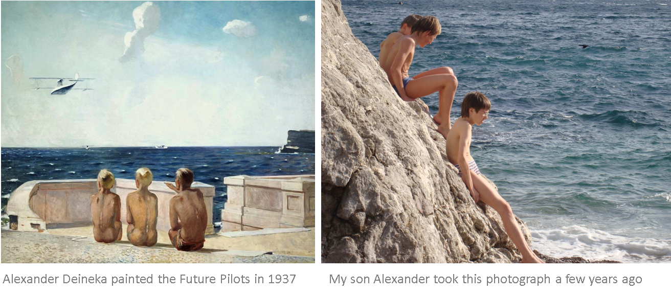 These two images are about 75 years apart. Boys in the painting share the dream of becoming pilots. In the 30s, pilots had uniform pants, jackets to kill for, plenty of food stamps and the romantic aura of heroes. It is social realism, which was an art movement as full of lies as the communist idea itself, but this painting is genuine and true.