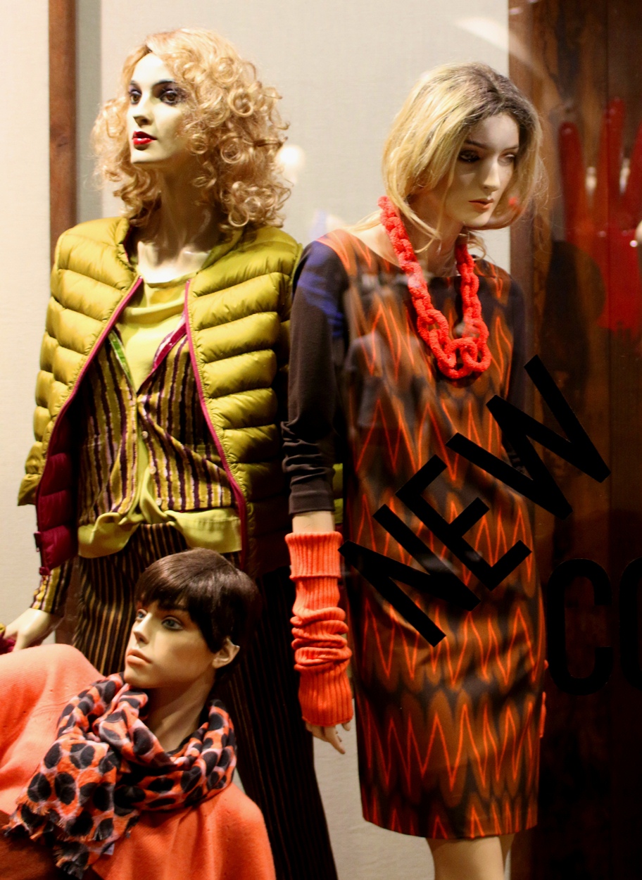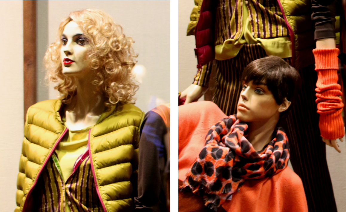 A depressed, disheveled, lost and almost suicidal dummy looking away from the other, very usual type of plastic women, offers customers a rare opportunity to ask themselves if the tens of thousands of photos they’ve taken on their tour of Italy made them happier.