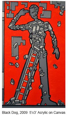 These pixelized people (?) are his iconic signature pieces. I bet one of them is bound to appear in popular crime fiction as a tool for murder in the next couple of years. Also, a note for movie-makers: red blood on black iron is especially arresting, but I am sure you’ve thought of this already. It’s not that the whole idea is new. Derek Boshier, who painted the instagram painting above created a similar Dark Web series almost ten years ago: