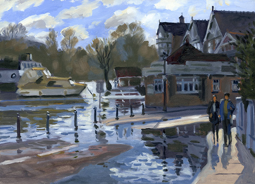 One of my favourite deluges comes from Alfred Sisley. Everything is flooded, but people find ways to go on living. The subtle but strong conflict between the flooded land and the skies is one of the best in the history of arts.