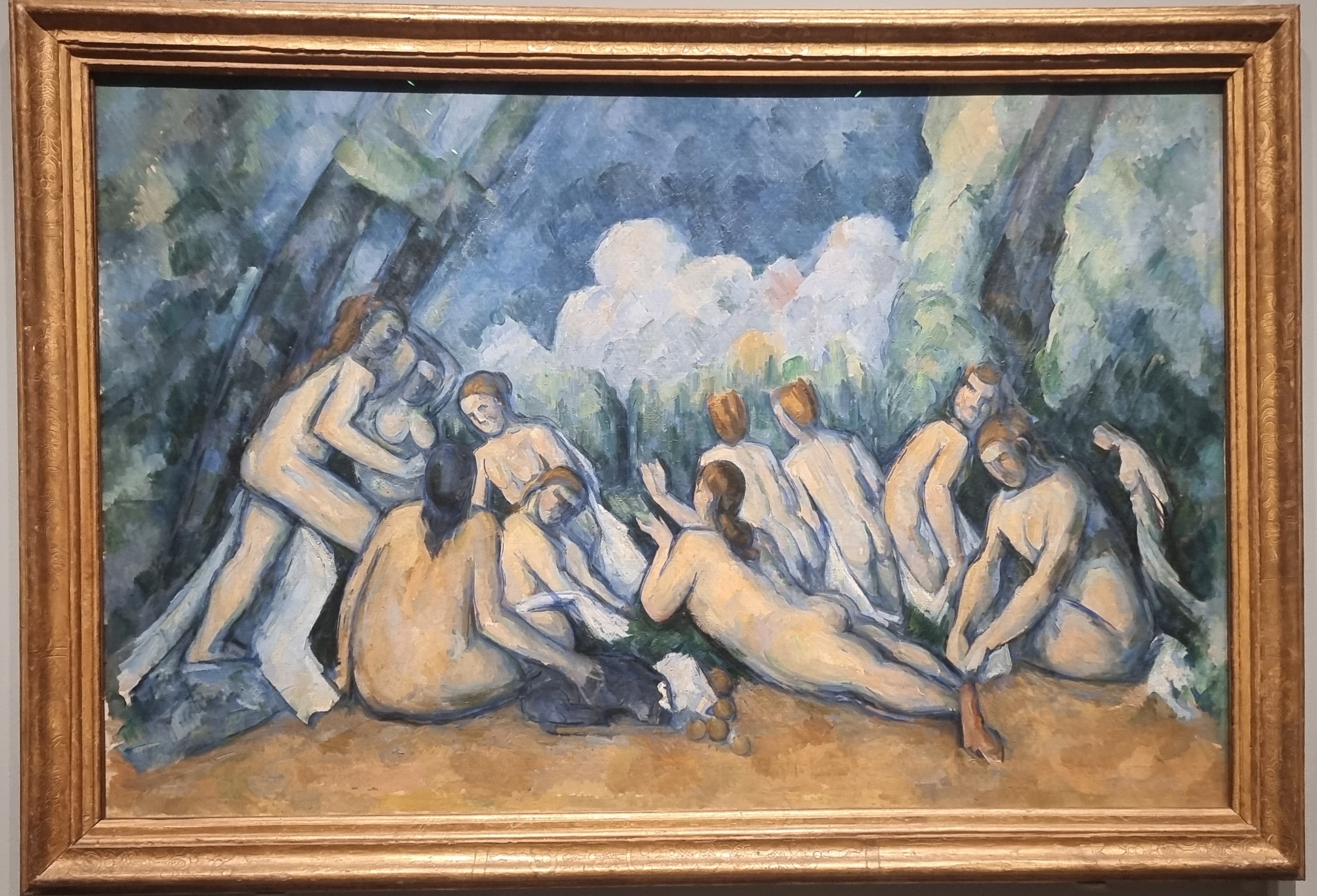 Cezanne made humans as monumental as nature itself, he equated them to nature and made them a part of it. Before Cezanne, people were inserted into landscapes as props – painted very differently to the nature that surrounded them, or the landscape was inserted as a background drop to men and women portrayed as bigger, better, more monumental than nature. Cezanne used the same shapes and colours to paint people that he used to paint the nature around them. He was making people an integral part of the composition as if they were found in nature and not a foreign “object” that moved in and would soon walk out.