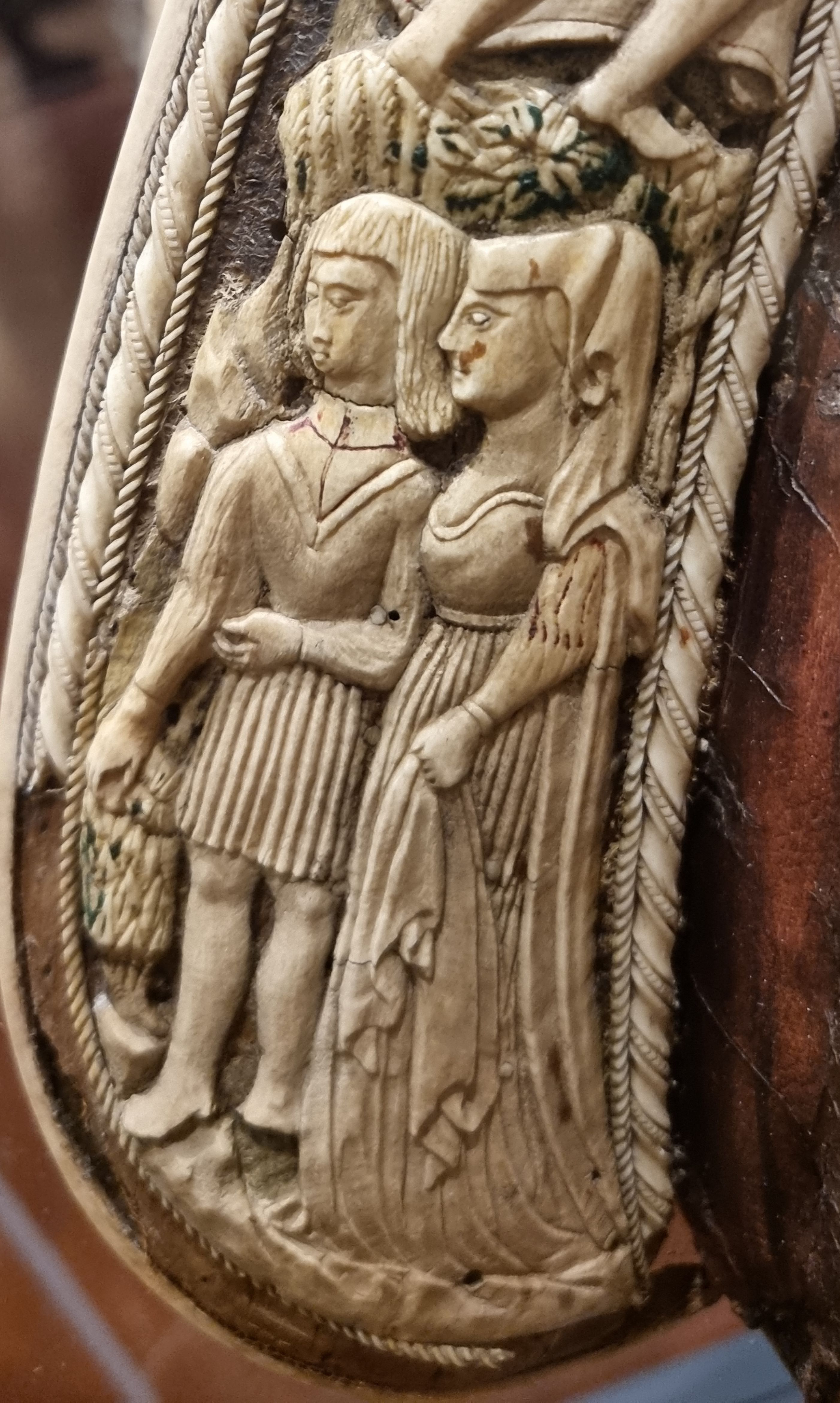 Hercules and St.George are shown at the back of the saddle, while the front is dedicated to courtly love, the main reason knights were slaying dragons.