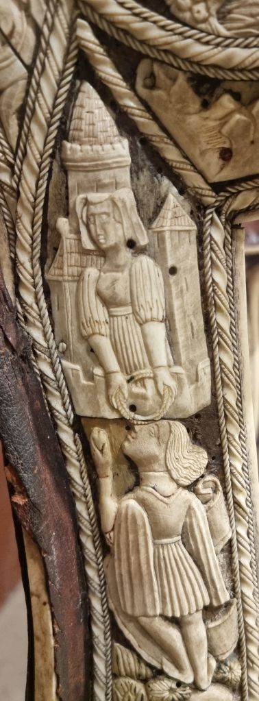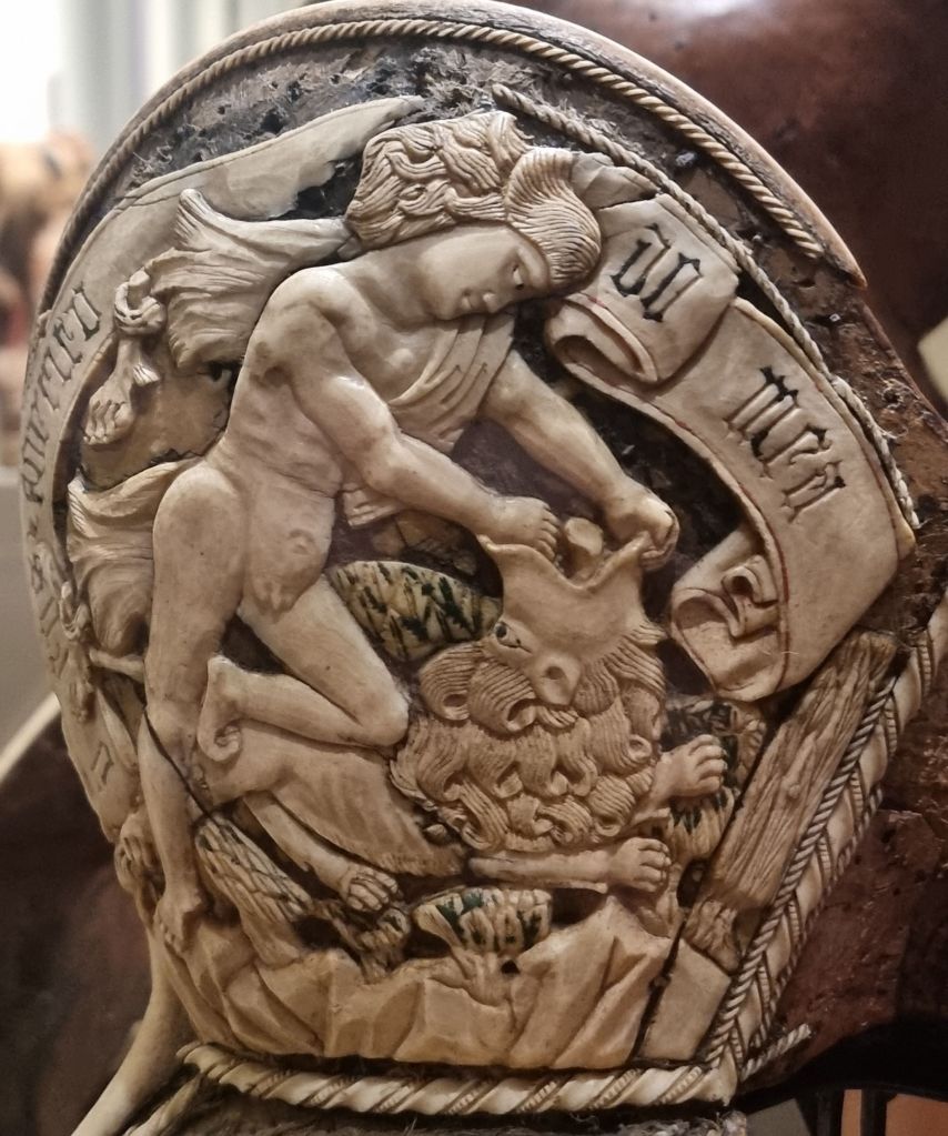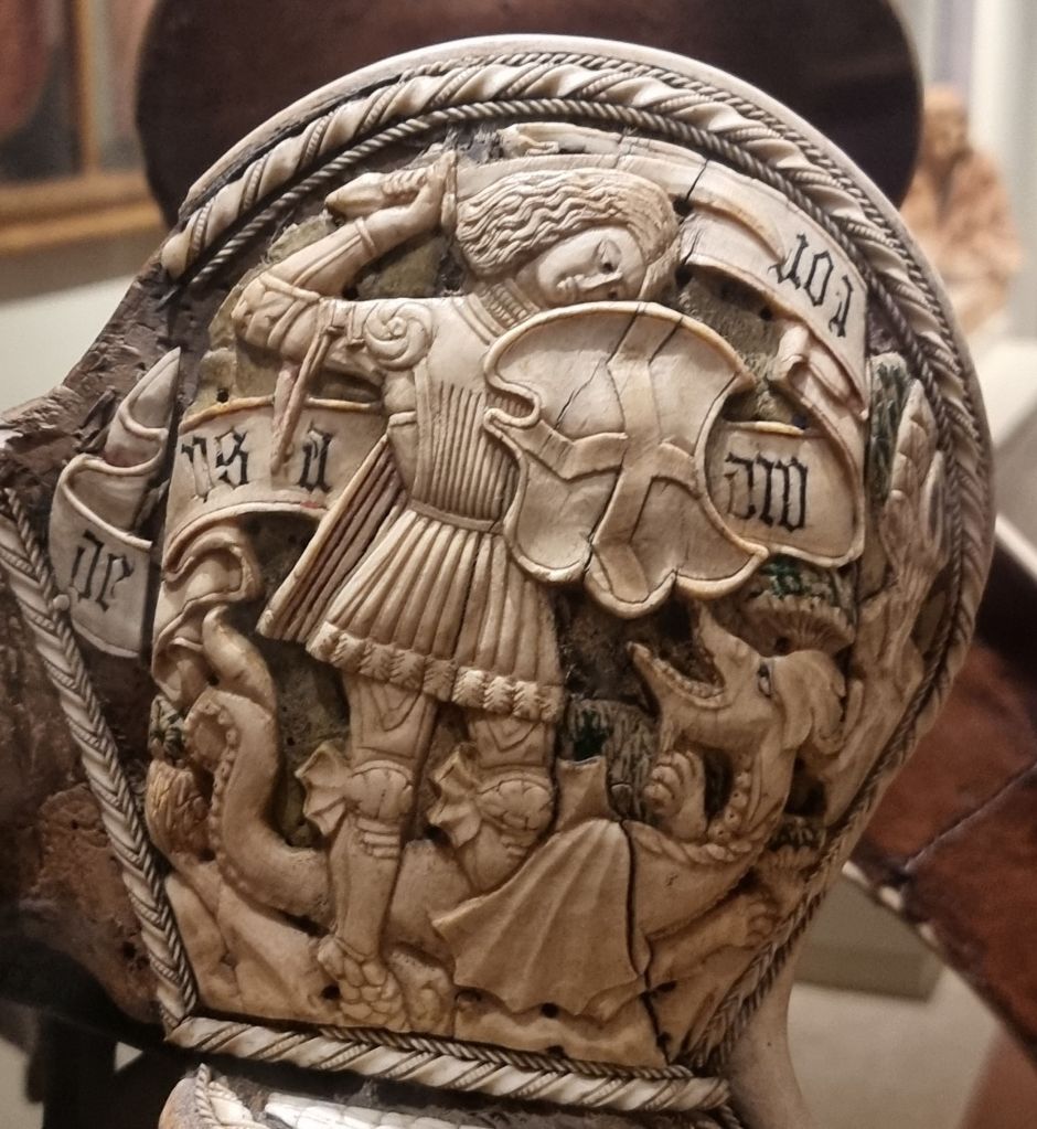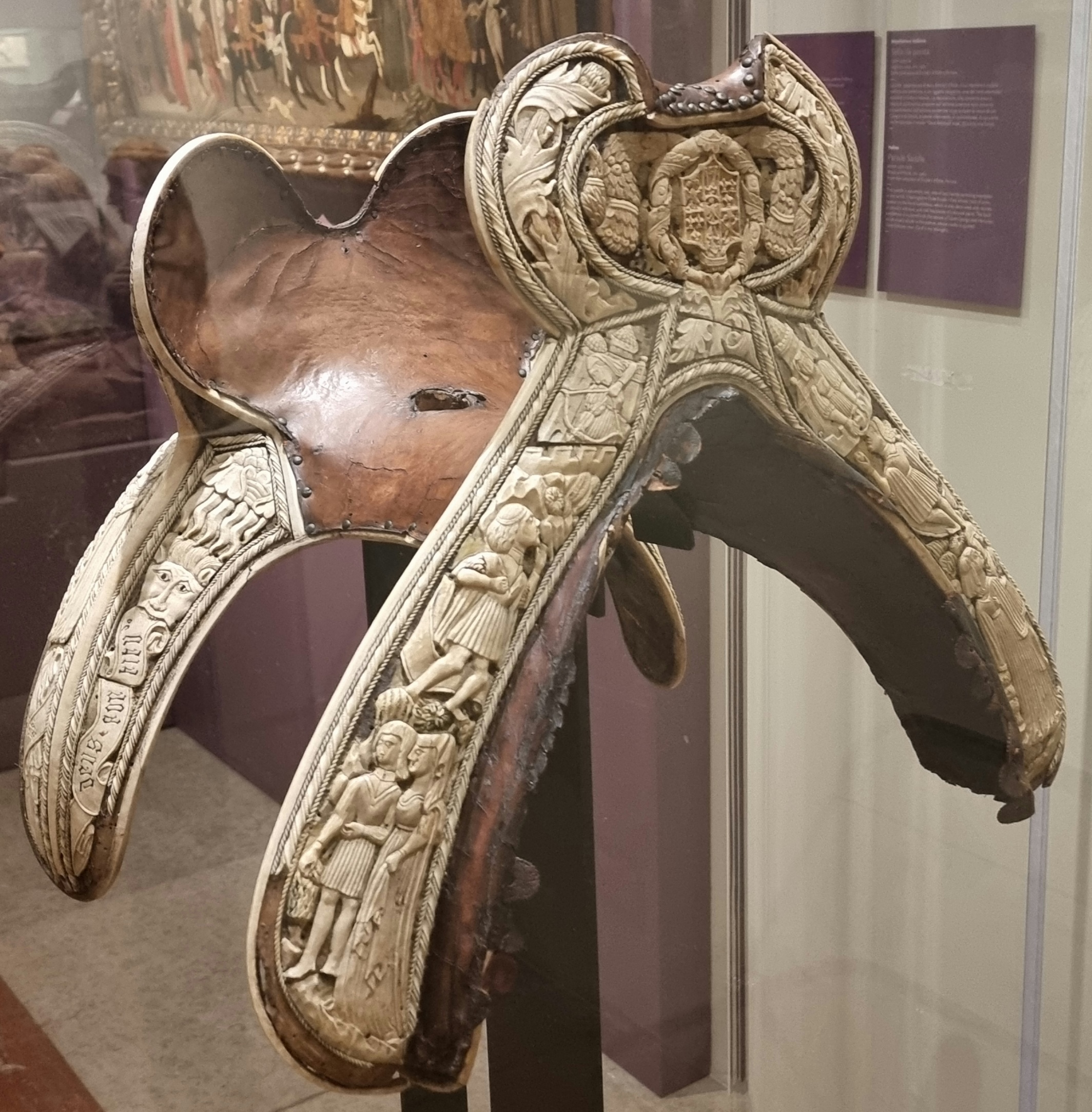 The art historical beauty of this saddle is that it fuses Ancient Greek mythology with Christianity and chivalry. If I ever lecture on the origins of the Renaissance, it would be one of the key exhibits.
